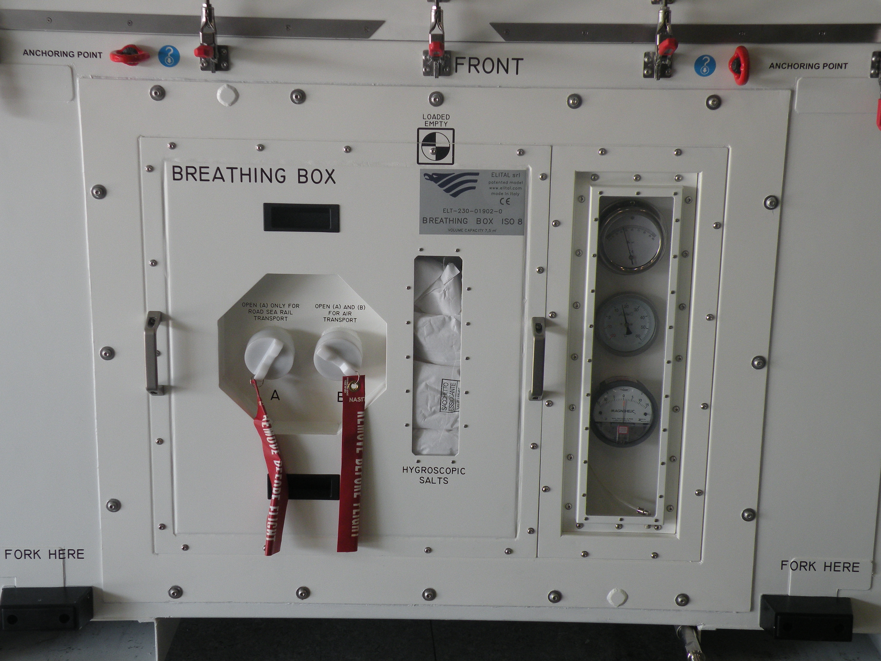Breathing box to guarantee the container venting in normal air-transport conditions, as per IATA rule requirements and in emergency case (quick re-pressurizzation).